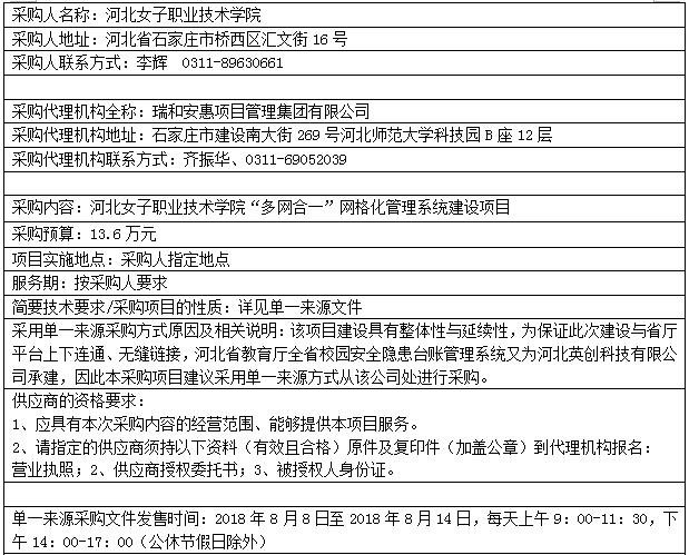 項(xiàng)目名稱:河北女子職業(yè)技術(shù)學(xué)院“多網(wǎng)合一”網(wǎng)格化管理系統(tǒng)建設(shè)項(xiàng)目