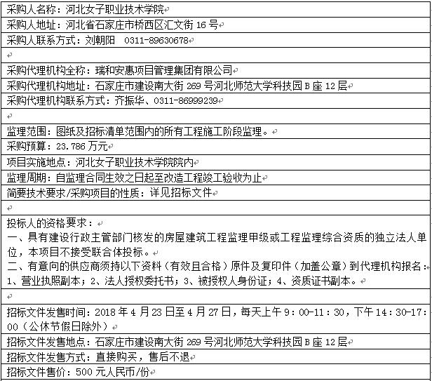 項目名稱:河北女子職業技術學院氣膜體育館、校園環境及教學條件提升項目監理服務