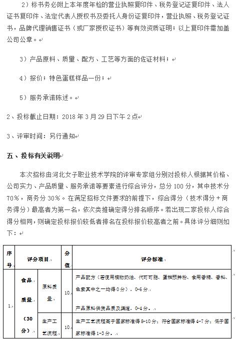 河北女子職業技術學院 2018年工會會員蛋糕券采購招標公告