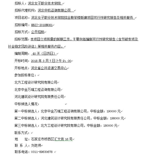 河北女子職業(yè)技術(shù)學(xué)院綜合教學(xué)樓新建項(xiàng)目可行性研究報(bào)告及相關(guān)服務(wù)中