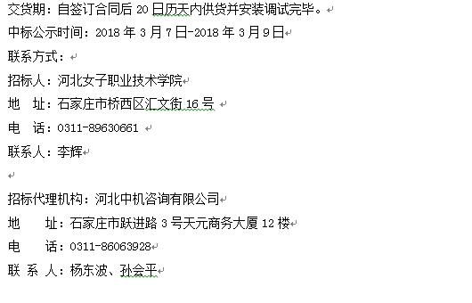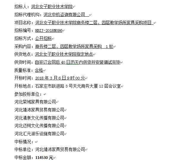 河北女子職業技術學院商務樓二層、四層教學場所家具采購項目中標公告