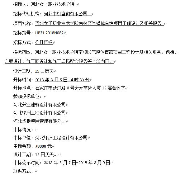 河北女子職業技術學院南校區氣模體育館項目工程設計及相關服務中標公