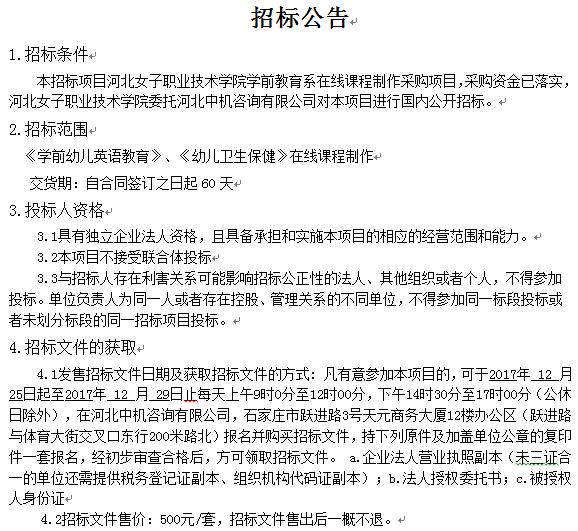 河北女子職業(yè)技術(shù)學(xué)院學(xué)前系在線課程制作招標公告