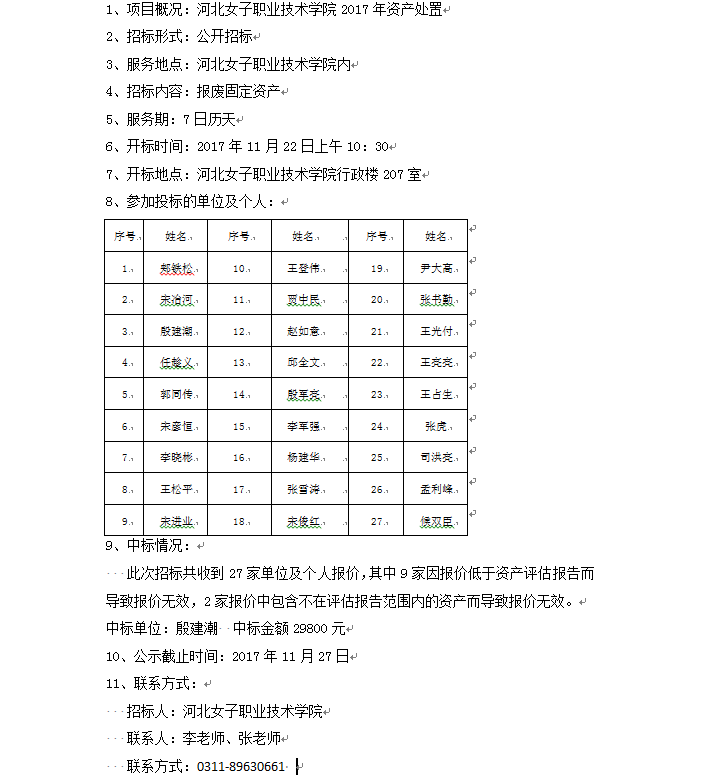 河北女子職業(yè)技術(shù)學(xué)院招標(biāo)中標(biāo)公告