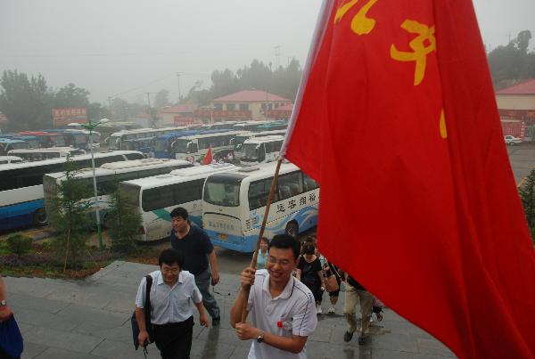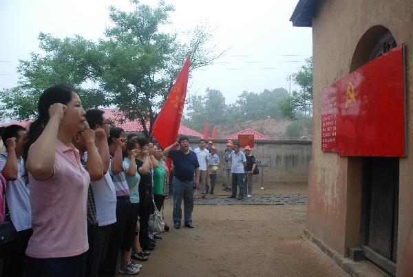 在七屆二中全會舊址前,學院黨委書記王靜同志和全體黨員,冒著朦朦細雨,重溫了入黨誓詞。在雨中,黨員和教職工群眾興致勃勃的參觀了“中共中央舊址”、“西柏坡紀念館”、“廉政館”、“西柏坡石刻園”、“西柏坡紀念碑”及“五大書記銅像”等優秀景點。