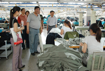在際華三五零二職業裝有限公司人力資源部部長張建中的陪同下,藝術系領導分別對際華三五零二職業裝有限公司一分廠、二分廠、三分廠和八分廠等實踐崗位的教師和學生進行了親切的慰問。慰問過程中,領導向帶隊教師以及實踐學生詳細了解了工作、生活等方面的詳細情況,并鼓勵學生要好好工作,勤練技能,不辱使命,為學院爭光添彩。