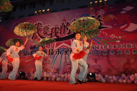 6月15日晚,我院教學樓前廣場燈光閃爍、彩球高掛、禮花繽紛。學院第六屆校園文化藝術節閉幕式暨“我要我的精彩”2010屆畢業盛典活動在學院廣場隆重舉行。學院黨委書記王靜同志、院長王振杰同志、副院長柳韶軍同志及全校教職工、5000余名在校生和畢業生共同觀看了演出。