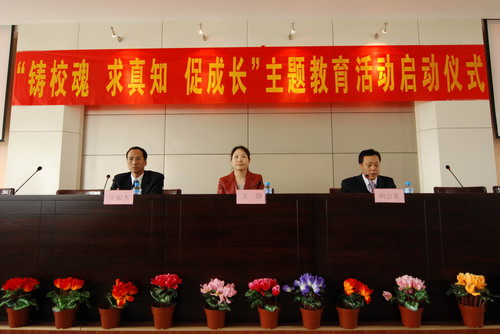 啟動儀式上,學院團委書記李佳老師宣讀了《“鑄?;?求真知 促成長”主題教育活動實施方案》;學生會主席付雅靜同學宣讀了《致女院全體學生的倡議書》。在響亮的樂曲聲中,王靜書記和王振杰院長向三系團總支頒發了“教育實踐基地”銅牌。
