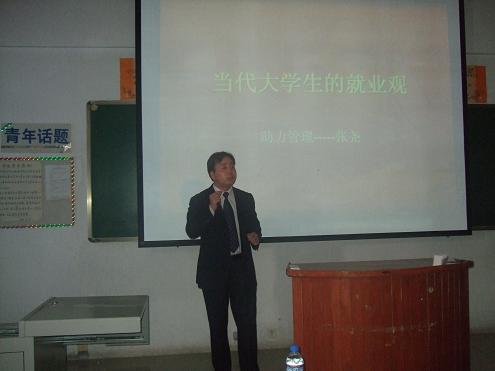 教室里座無虛席,張堯老師開始了他幽默而風趣的講座。他首先為大家播放了一段一位身殘志堅的女性成功就業的視頻,展示了工作中企業對員工的各方面的素質要求。隨后他用直觀圖表和詳細數據對我國目前的就業形式、大學生就業難成因等問題進行了分析,并就當前我校大學生如何提高自身的就業能力、如何提高職業核心能力等方面做了深入淺出的講解。其中提到,目前社會求職人員數量大,而且最近幾年還有逐年遞增的趨勢,而合乎用人單位的人才卻不多。這就要求我們的大學生應當樹立正確的擇業觀、擺正就業心態,不斷提高實踐經驗,加強競爭意識與創新意識,具備優良的社會素養、崇高的職業道德和高超的職業技能。要注重學校的專業教學培養,要適當地參加專業性的職業培訓。從而達到提高職業技能和職業素質的目的。