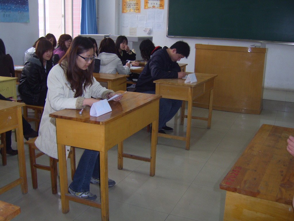 4月9日,08文秘班的學生在《文書工作與檔案管理》課程上模擬職場,學習文書的制作與處理。