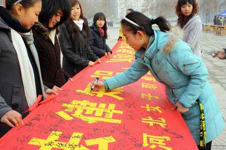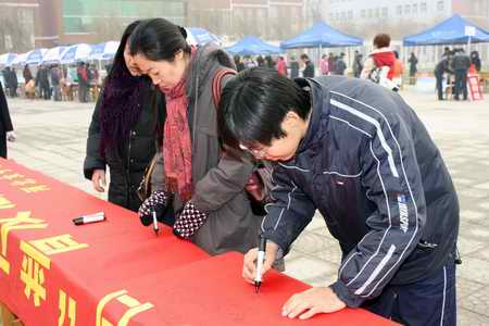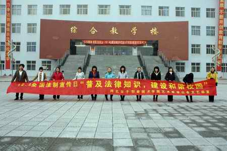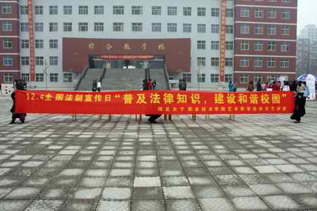 法律離我們并不遙遠,法律與我們的生活息息相關,密不可分。學法,懂法,用法,是青少年素質教育的重要組成部分。2009年12月4日是黨的十七大召開后第二個法制宣傳日,依法制國,建設社會主義法制社會是我國基本的制國方略。今年國家法制宣傳日主題是“加強法制宣傳教育服務經濟社會發展”,在當今社會體制深刻變化,利益格局深刻調整,思想價值觀念日益變化的社會中,我們每個大學生都要學會,懂法,用法律來維護自身合法的權益。作為女子學院的學生,我們要普及法律知識,建設和諧校園。文藝部全體成員于2009年12月4日在學院廣場上組織了大型的法制宣傳簽字活動,來自全院的 1600多名師生在條幅上簽上了自己的名字。