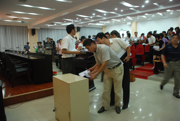 會后,與會代表就我院學習實踐活動進行了群眾滿意度測評投票。
