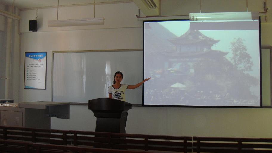 學生在導游實訓室用多媒體做景點講解