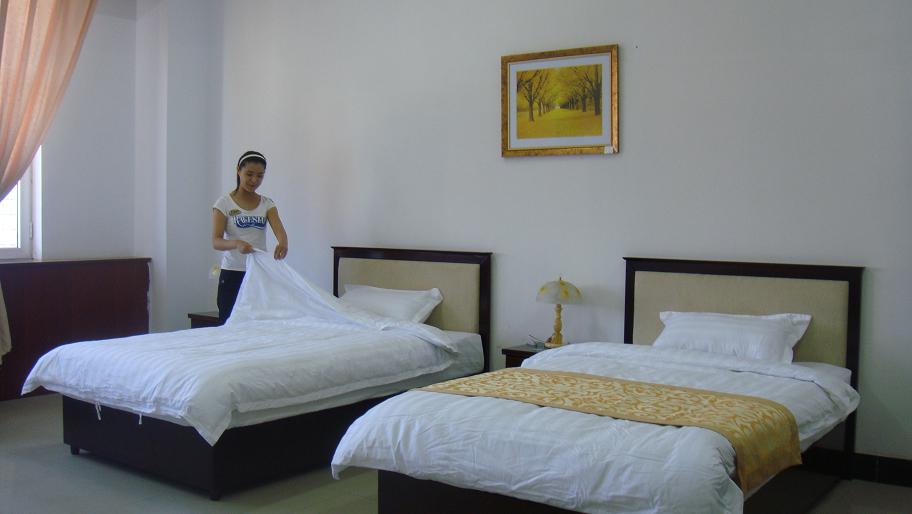 學生在客房實訓室做技能訓練