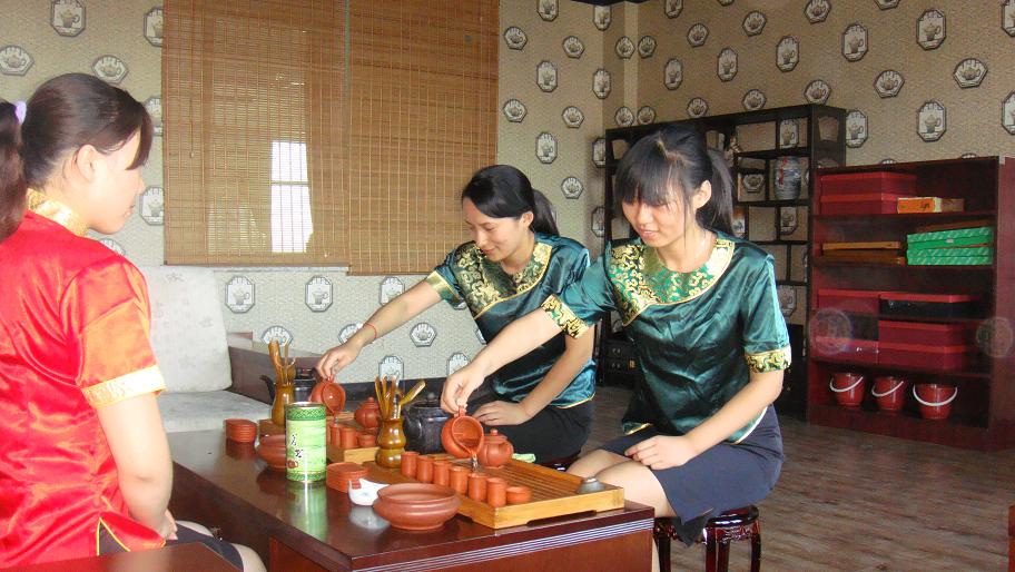 學生在茶藝實訓室做茶藝表演