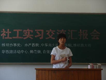 到昨天為止,07級社會工作專業的學生為期兩周的實習圓滿結束。24個學生被分配到石家莊橋西區維明街道辦事處下屬的七個居委會(自強路居委會、水產西街居委會、維明南大街居委會、師范街居委會、華西路居委會、中華南大街居委會和泰華街居委會),協助居委會工作人員入戶登記、調解糾紛、整理檔案、登錄資料等。這次實習活動,極大提高了居委會的辦事效率,同時也提高了學生們的實踐能力,對本專業有了更深一步的認識。