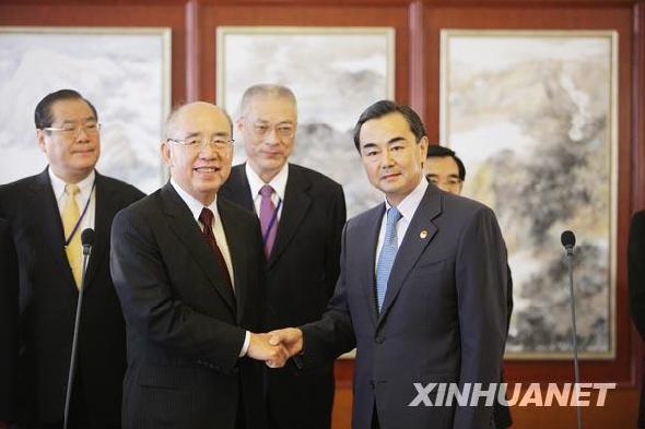 當日,中國國民黨主席吳伯雄率領中國國民黨大陸訪問團乘機抵達北京,開始訪問大陸行程。中共中央臺辦主任王毅到機場迎接。新華社記者邢廣利 攝