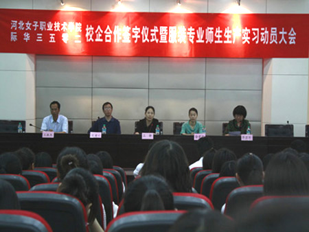 5月12日,際華三五零二職業(yè)裝有限公司一行眾人在該公司人力資源部部長(zhǎng)張建中的帶領(lǐng)下,來(lái)我院舉行校企合作簽字儀式。為了配合企業(yè)的工作,實(shí)現(xiàn)校企雙方合作管理,我院召開(kāi)動(dòng)員大會(huì),歡送服裝設(shè)計(jì)專業(yè)師生赴際華三五零二職業(yè)裝有限公司進(jìn)行生產(chǎn)實(shí)習(xí)。