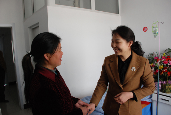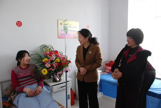 4月3日,我院黨委書記王靜同志在藝術設計系主任李彥琴和系團總支書記徐超的陪同下,驅車3個多小時到滄州市青縣紅十字醫院,看望了生病住院的08級服裝設計專業潘洪嬌同學,并帶去了全院師生的愛心捐助款。