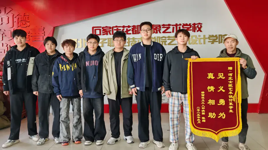 3月17日,橋西環衛工人鐘洪國師傅送來了錦旗,感謝河北女子職業技術學院藝術設計系2023級服裝設計與工藝專業高哲、2024級服裝與服飾設計專業齊東洋、高自陽 、李文浩、袁偉哲、陳佳旺、閆夢鑫同學危急時刻真情相助,在火災面前臨危不懼、處置得當,向見義勇為的他們表示感謝!藝術設計系對7名同學進行了全系通報表揚。