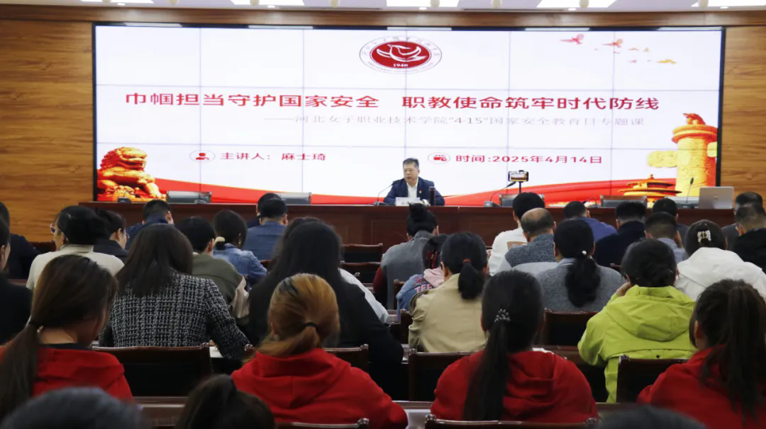 4月15日是第十個(gè)全民國(guó)家安全教育日,今年的主題是:全民國(guó)家安全教育,走深走實(shí)十周年。河北女子職業(yè)技術(shù)學(xué)院精心組織并開(kāi)展全民國(guó)家安全教育系列活動(dòng)。4月14日,學(xué)院黨委書(shū)記麻士琦以“巾幗擔(dān)當(dāng)守護(hù)國(guó)家安全 職教使命筑牢時(shí)代防線”為主題為全院師生代表講授國(guó)家安全教育專題課。講座由學(xué)院副院長(zhǎng)董彥菊主持。