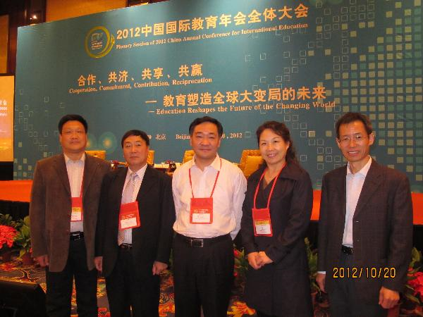 由教育部批準、中國教育國際交流協(xié)會主辦的“2012中國國際教育年會”于10月19日至21日在北京國貿(mào)飯店舉辦。教育部副部長郝平、中國教育國際交流協(xié)會會長章新勝、德國外交部副部長康奈莉婭·皮珀以及來自美國、澳大利亞、加拿大、芬蘭、法國、德國、俄羅斯、新加坡、英國等38個國家和地區(qū)的500多所高校的領(lǐng)導(dǎo)和專家出席了年會。我院黨委書記王靜、院長竇新順等一行五人應(yīng)邀出席了本次活動。