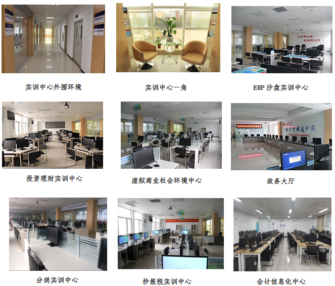 跨專業綜合實訓中心面積900余平米,設備資產總值400余萬元。包含ERP 企業經營實訓中心、虛擬商業社會環境VBSE實訓中心及虛擬政務大廳、金融理財綜合實訓中心四部分。