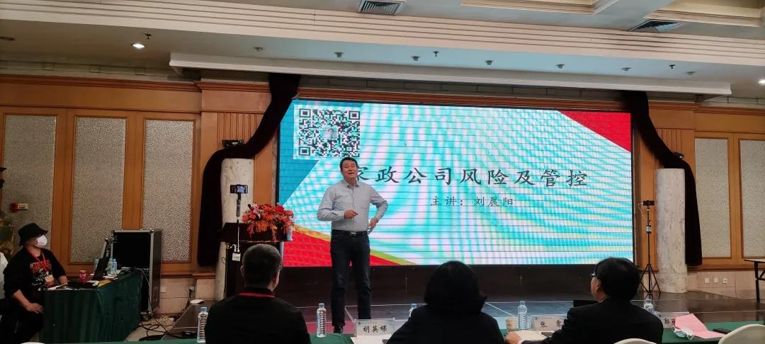 全國家政行業誠信聯盟秘書長、中國《家政之聲》雜志主編、晨陽大講堂創始人劉晨陽以《家政企業風險防范與控制》為題,做專題講座。